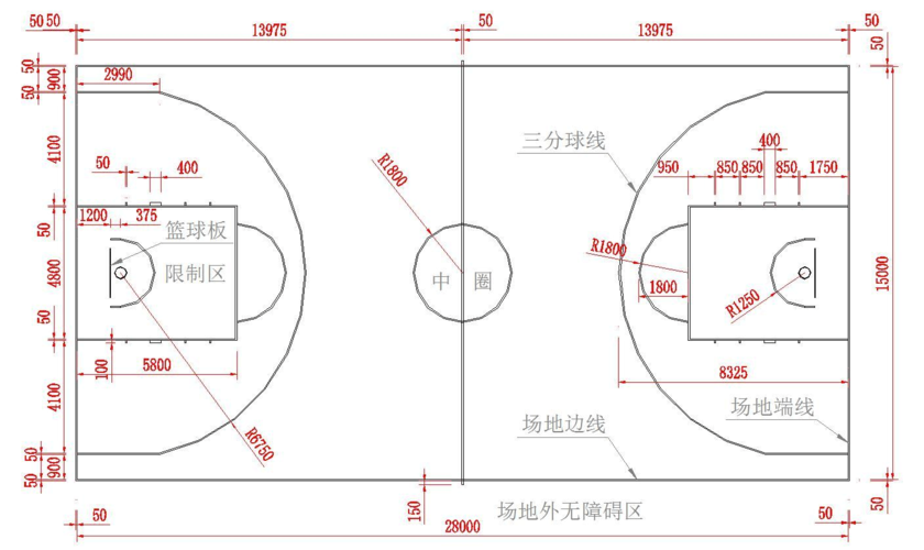国际篮联最新篮球场地标准尺寸画法